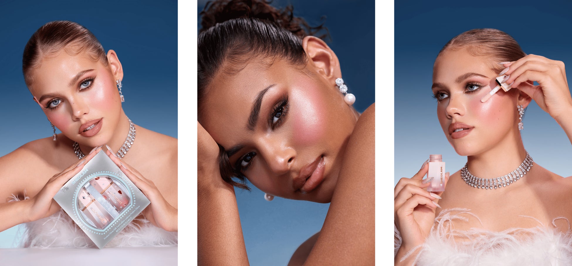 ベストセラーセットには、ほんのりと馴染む血色カラーが特徴のリキッドチーク「Love Cake」と、自然なツヤ感が特徴のハイライター「Vanilla Frost」が含まれており、どんなメイクにも合わせやすい万能カラーの組み合わせです。もう一つは、大人気のリキッドチークカラー「Rose Ritual」と、新色ハイライター「Glass Heart」のセット。「Rose Ritual」は、肌に溶け込むようなオレンジブラウンカラーが特徴のリキッドチークで、「Glass Heart」は、顔に立体感を与えるだけでなく、濡れたようなツヤ感を演出するハイライターで、2つを組み合わせて使うと、ホリデーシーズンにぴったりな華やかさを演出します。