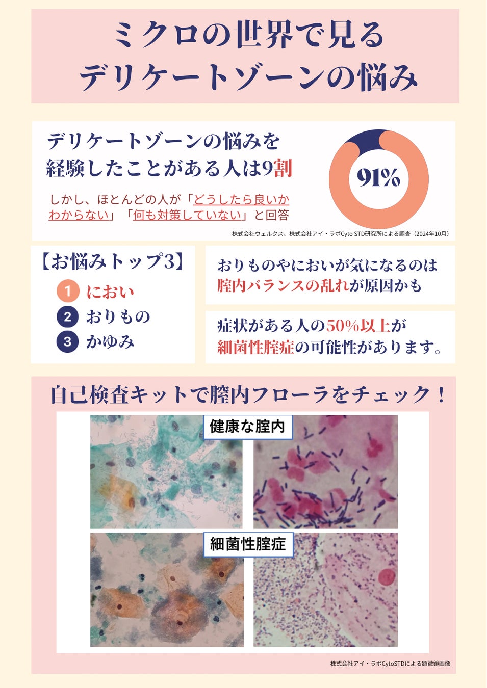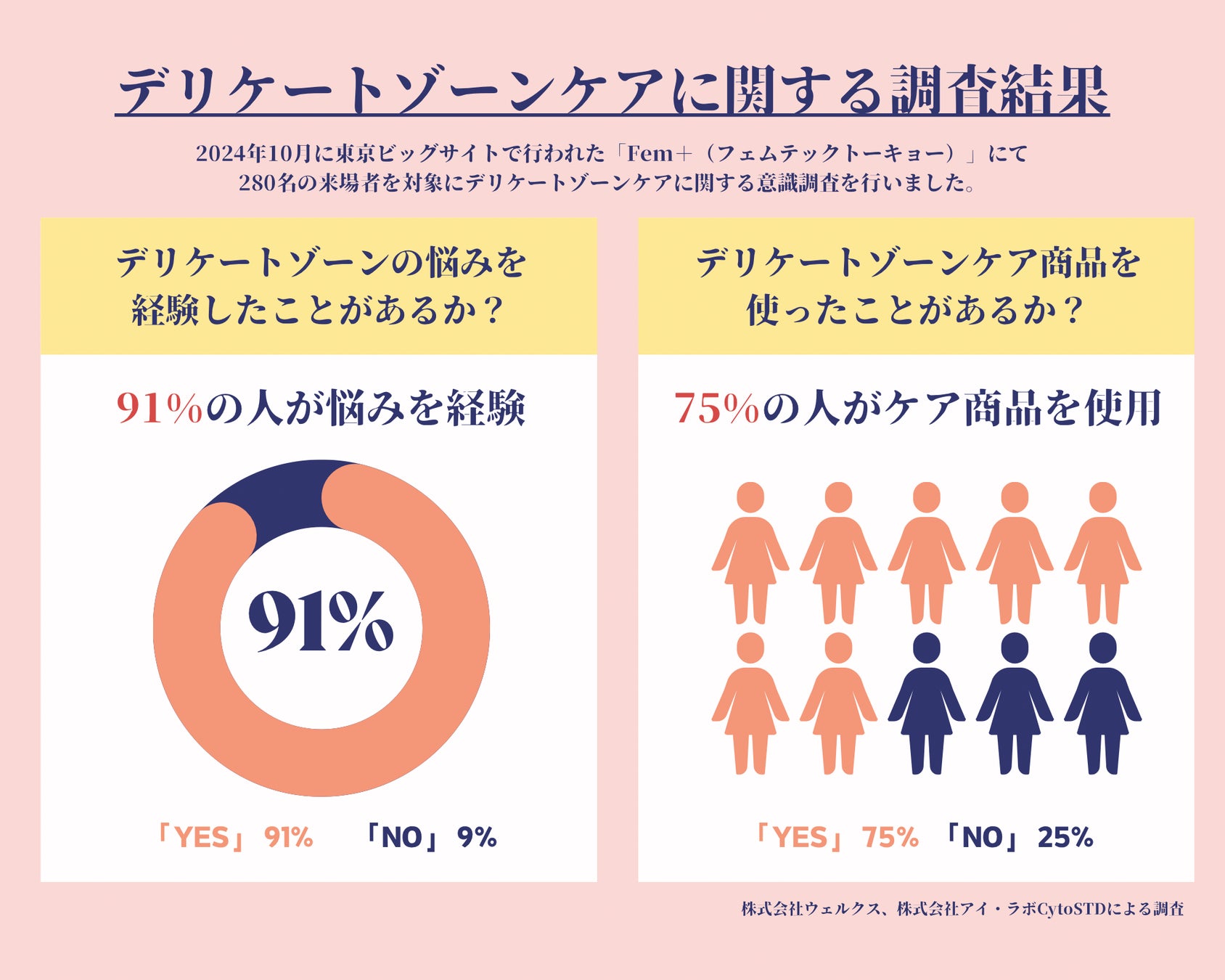 2024年10月に東京ビッグサイトで開催された「FEM+」において、株式会社ウェルクスと株式会社アイ・ラボCyto STD研究所は、280名の来場者を対象にデリケートゾーンケアに関する意識調査を実施。
