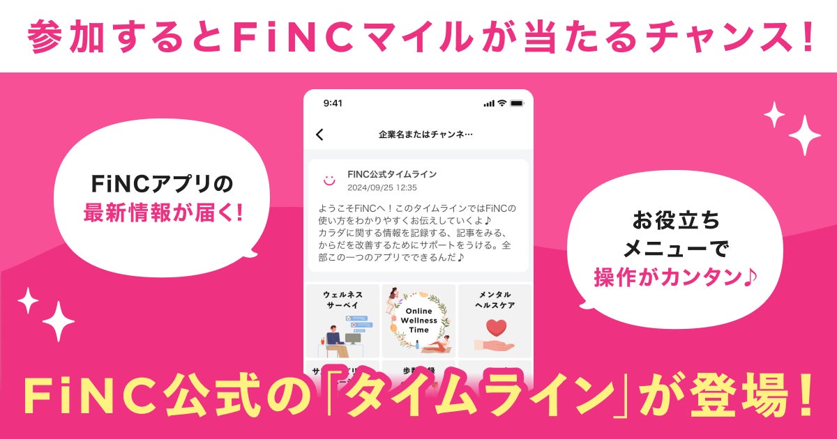 また、FiNC公式タイムラインに参加すると、商品やデジタルチケットと交換できるFiNCマイル(100マイル)が抽選で500名様に当たるキャンペーンを実施中です。