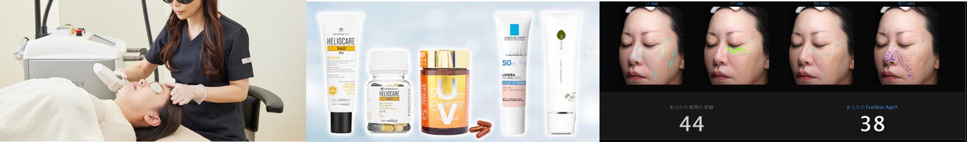 皮膚科の専門医が常駐する当院では、紫外線ケアの指導の他、出来てしまったシミにはレーザーやIPLを併用してエイジングケアを行っています。