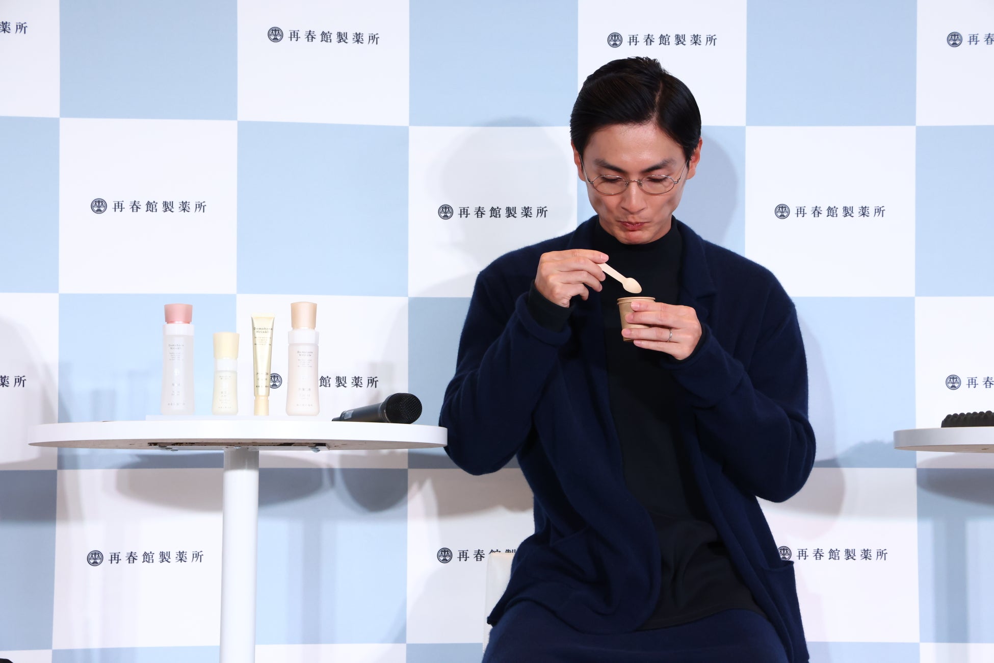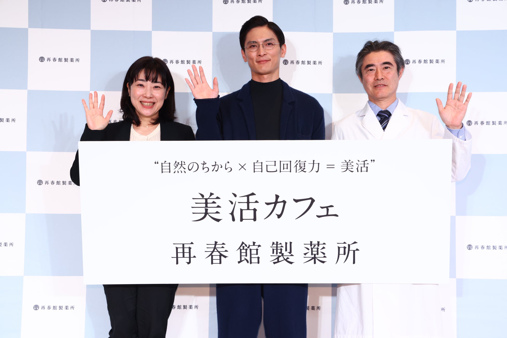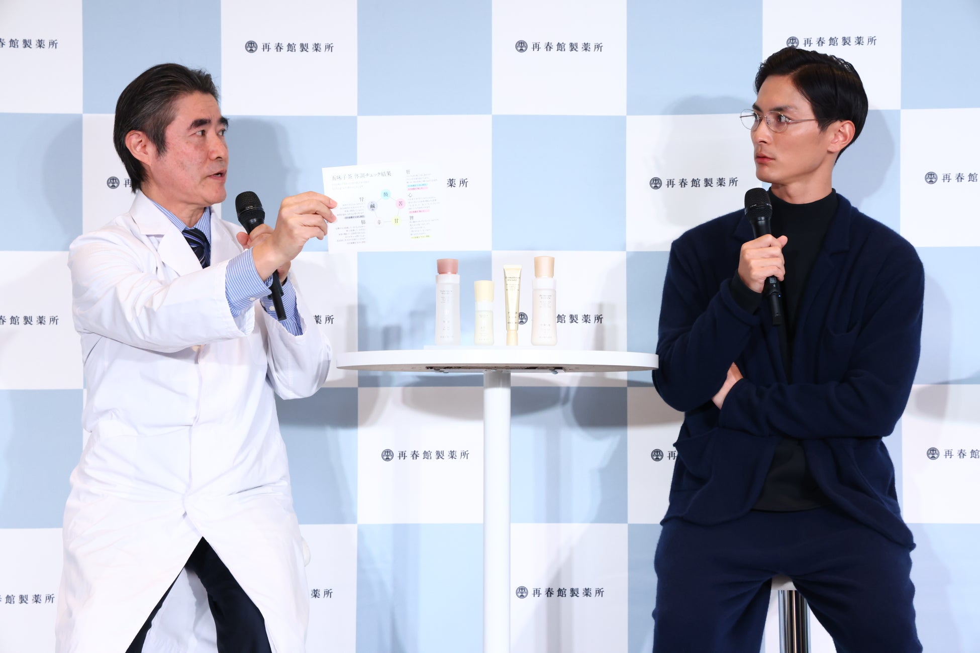 当日は、イベント概要・コンテンツ概要のご紹介の他、今年から初の「ドモホルンリンクル」ブランドアンバサダーに就任した俳優の高良健吾(こうら けんご)さんと、漢方医学に西洋医学を融合させる治療の第一人者の「 芝大門 いまづ クリニック 」の今津嘉宏(いまづ よしひろ)院長をお招きし、再春館製薬所の根幹をなす「漢方発想」に基づく「美活」について紐解いていくとともに、 会場でお試しいただける“美活メニュー” をご体験いただきました。