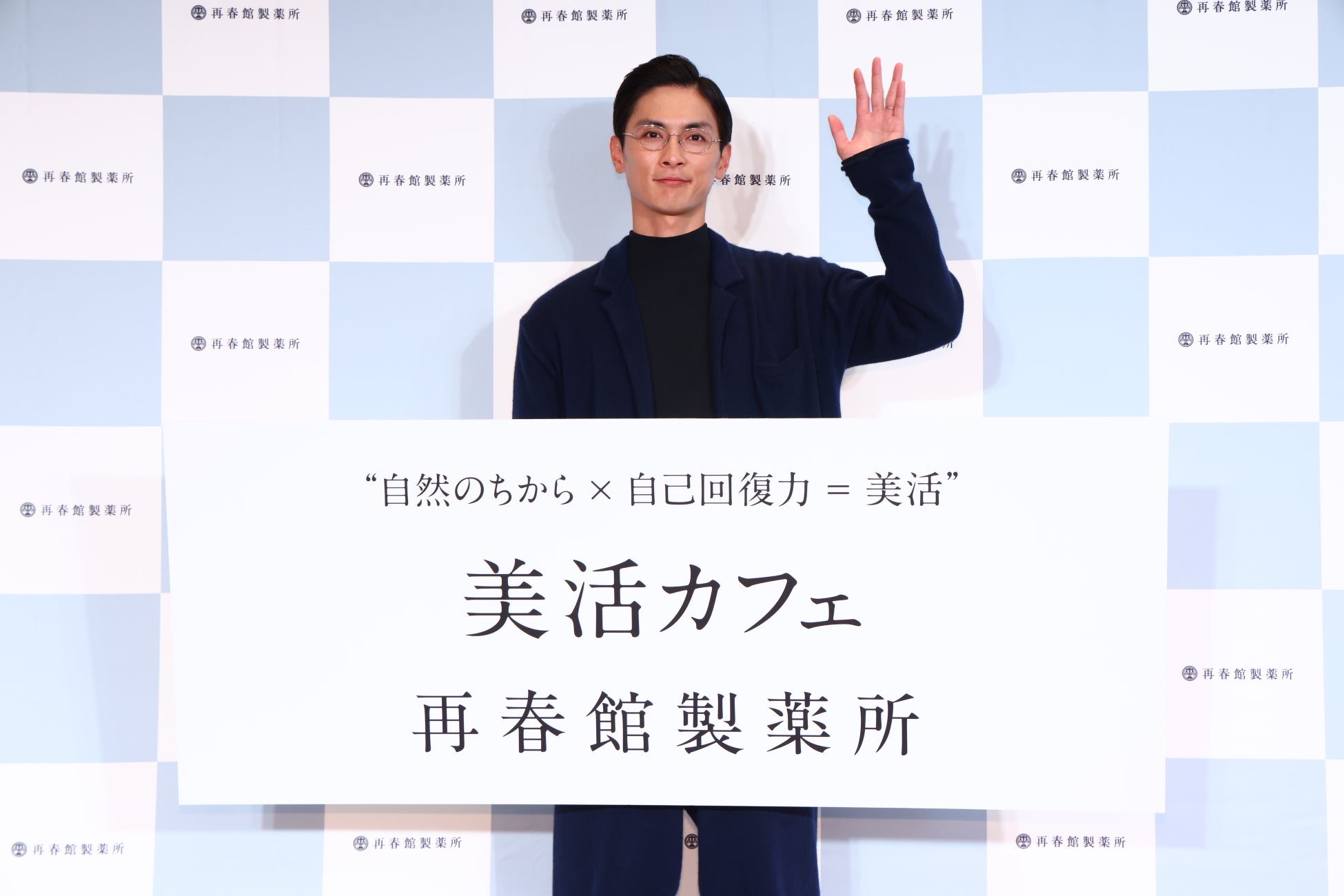 これを記念し、POP-UPイベント初日である11月7日(木)に、ブランドアンバサダーの俳優 高良健吾さんをお招きし、「ドモホルンリンクル」誕生50周年記念POP-UPイベント「美活カフェ」再春館製薬所 発表会を開催いたしました。先日結婚を発表された高良さんのメディアでのご登壇は初の機会となる当イベントでは、見どころに加え、俳優生活20周年についてや今年を振り返った「象徴する漢字一文字」の発表など、「美活」にも関連するトークをいただきました。