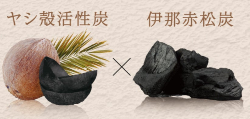 1. 厳選した伊那赤松炭とヤシ殻活性炭を配合