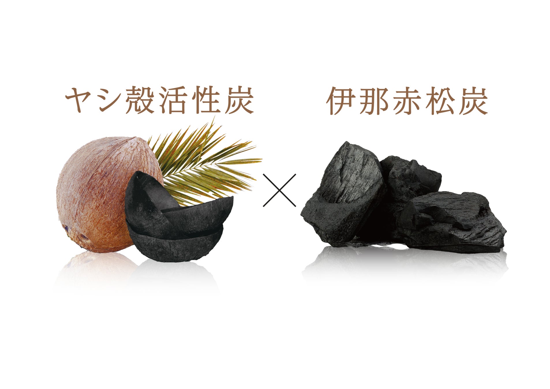 ※1:ヤシ殻活性炭、伊那赤松炭(吸着成分) ※2:プラセンタエキス(保湿成分)