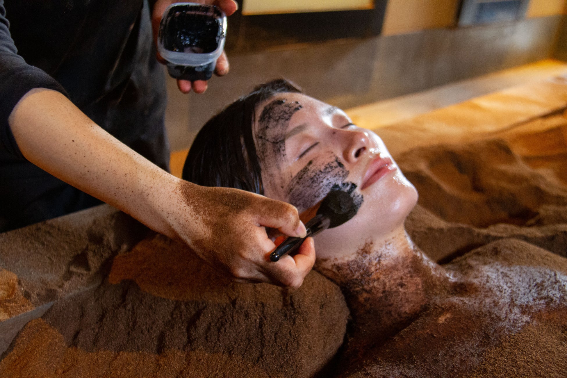 ①女子旅向け 酵素風呂で麻炭パック サウナでフェイスパック