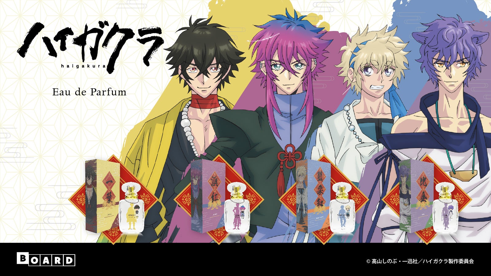 合同会社BOARD(東京都品川区)は、高山しのぶ原作のTVアニメ「ハイガクラ」より登場キャラクターをイメージした香水を発売いたします。2024年11月15日(金)18時より、公式オンラインストア「BOARD OFFICIAL SHOP」、Amazonにて販売を開始いたします。