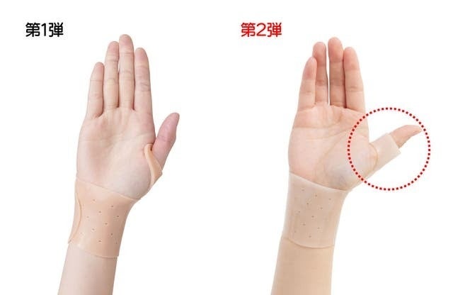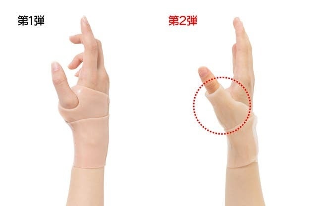第1弾では親指の付け根部分のみのサポートだったものが、今回は親指を広く包み込む構造へ進化!
