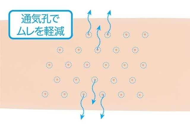 通気性を高めて蒸れにくくするために、サポーター表面に複数の通気口を開け、より快適にご使用いただける設計にしました。