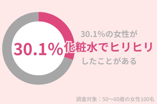 調査の結果、50代女性のうち、30.1%の方が化粧水によって肌がヒリヒリとしたことがあるとわかりました。