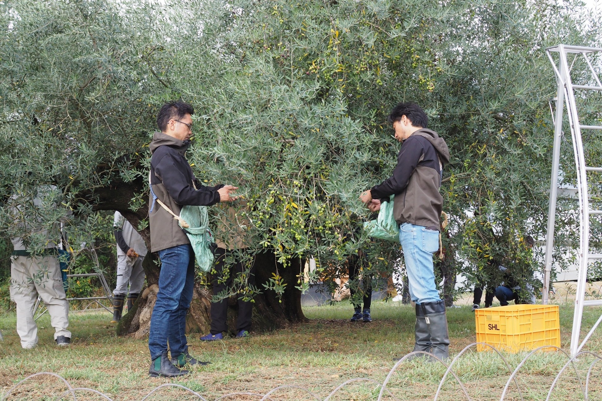 1000年続くオリーブの森へ。社長・副社長も毎年参加し手摘みで収穫