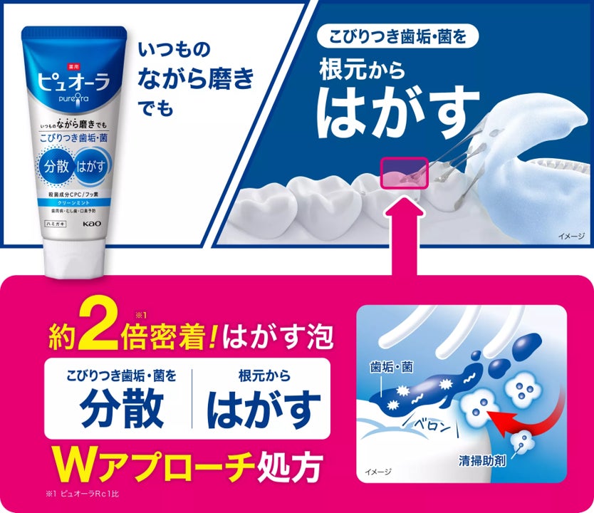 いつもの“ながら磨き”でも こびりつき歯垢・菌を分散 根元からはがす Wアプローチ処方