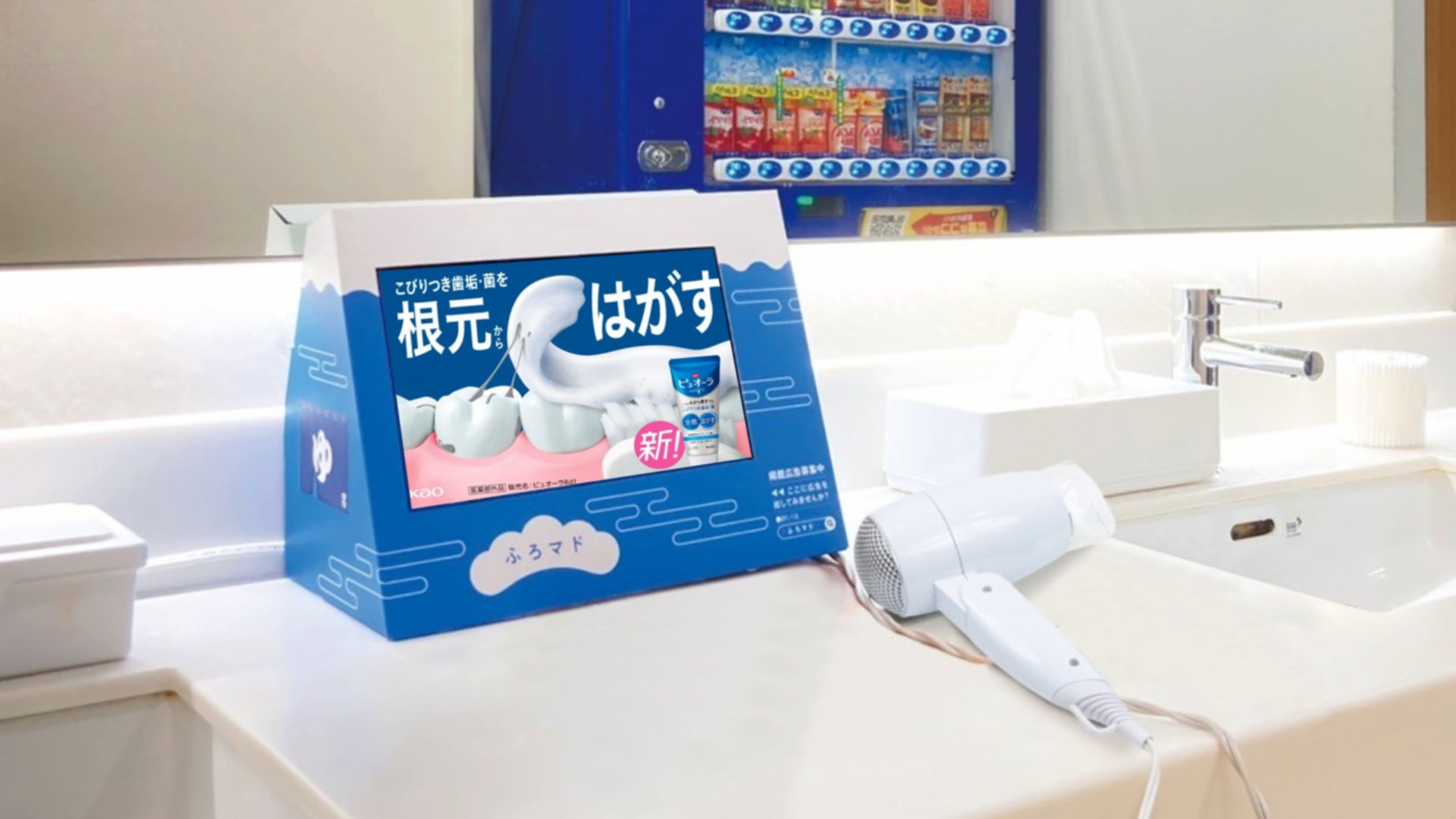 株式会社SENSE(本社:大阪市中央区 代表取締役:林裕二)が運営する日本初の銭湯特化型デジタルサイネージ『ふろマド』にて、花王の改良新商品「薬用ピュオーラ ハミガキ」の動画広告を放映開始いたします。