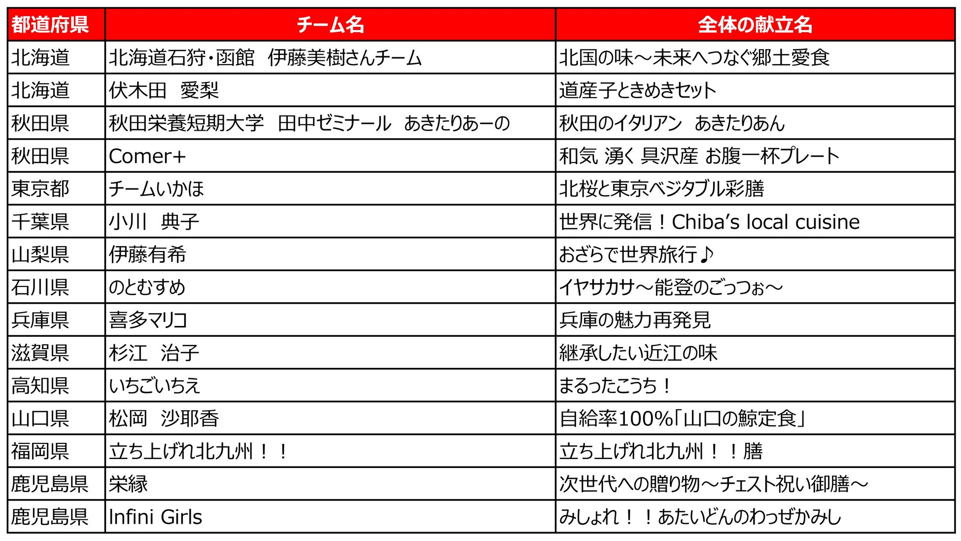 全国大会へと進出する 15 チームのなかから、自分が食べてみたい献立に投票するSNS企画「人気投票キャンペーン」で最も得票数の多かった「人気メニュー賞」が発表されました。人気メニュー賞に選ばれたのは兵庫県相生市 喜多マリコさんチームの「兵庫の魅力再発見」で、Amazonギフトカード3万円分が贈られました。総得票数は2776票で、全国から地元やチームを応援する温かいコメントも寄せられました。