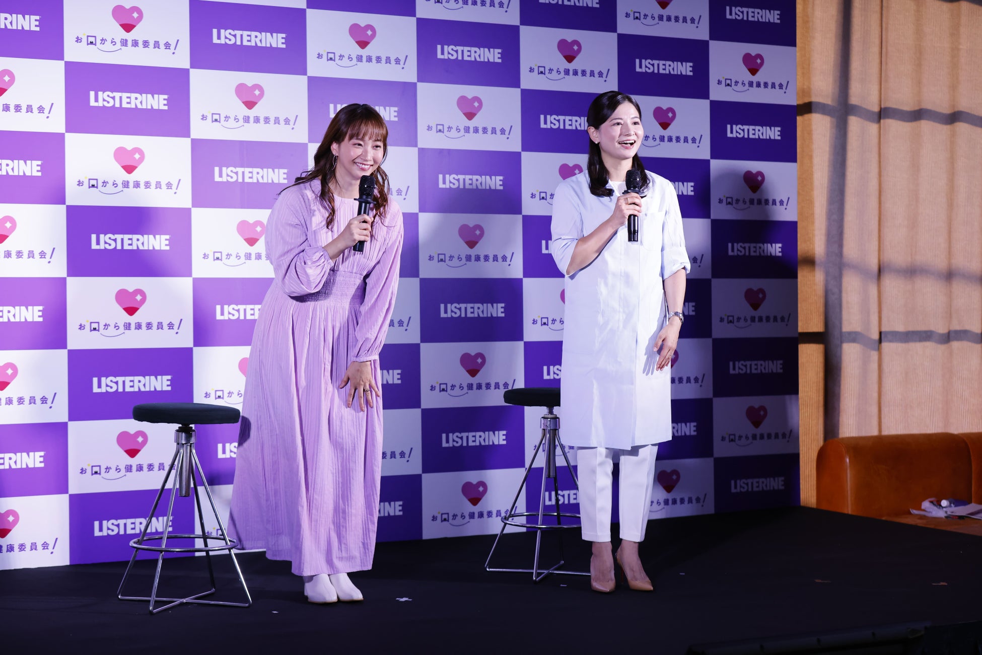 安達先生の講演終了後、アンバサダーの藤本美貴さんが登壇し、安達先生と「家族のお口と体の健康」をテーマに対談しました。
