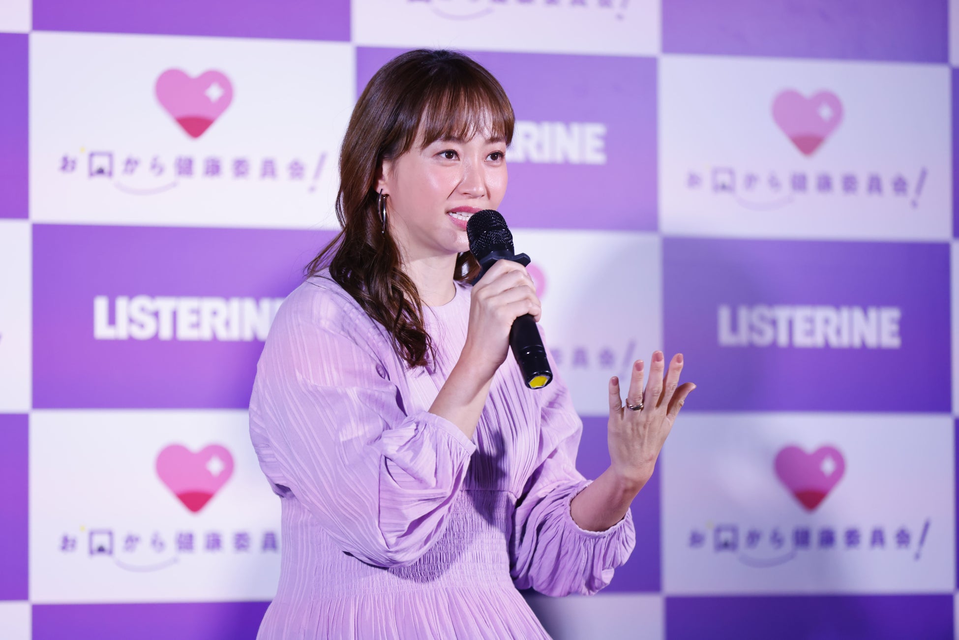 「お口から健康委員会のアンバサダーに就任させていただきました!先ほど浦崎さんがお話されていたように、私もお口の菌と全身の関係について知らなかった1人です。自分の健康はもちろん、夫や子供、家族の健康も守って行きたいのでぜひ一緒に勉強をさせていただきたいです。また、口腔ケアの大切さを皆さんに知っていただけるよう、活動して行きたいと思います!」と、今後の意気込みについて語っていただきました。