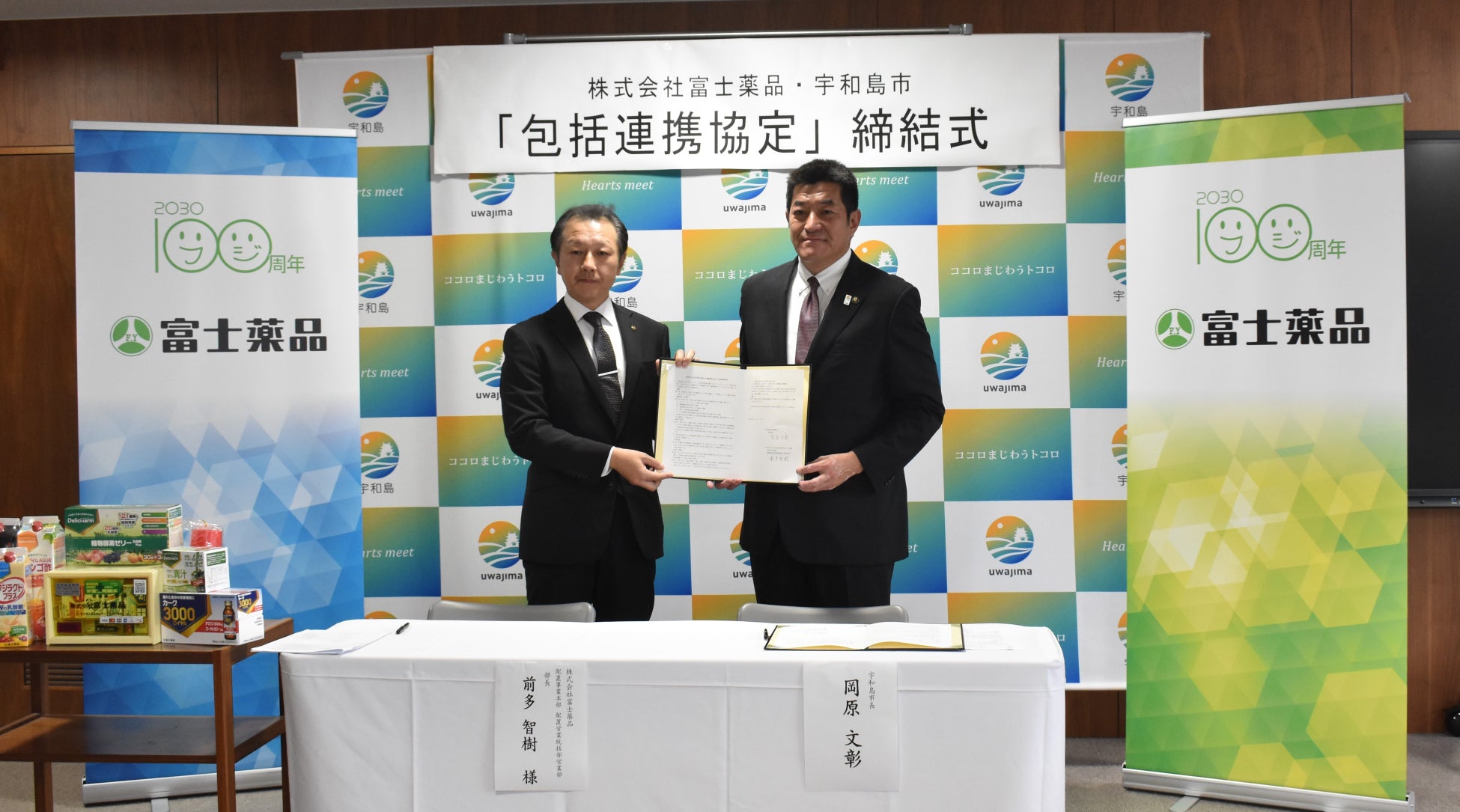 医薬品の研究開発から製造・販売までを行う複合型医薬品企業の株式会社富士薬品(本社:埼玉県さいたま市 代表取締役社長:高柳 昌幸、以下「富士薬品」)は、2024年11月12日(火)、愛媛県宇和島市と「市民の健康増進に関する包括連携協定」を締結いたしました。