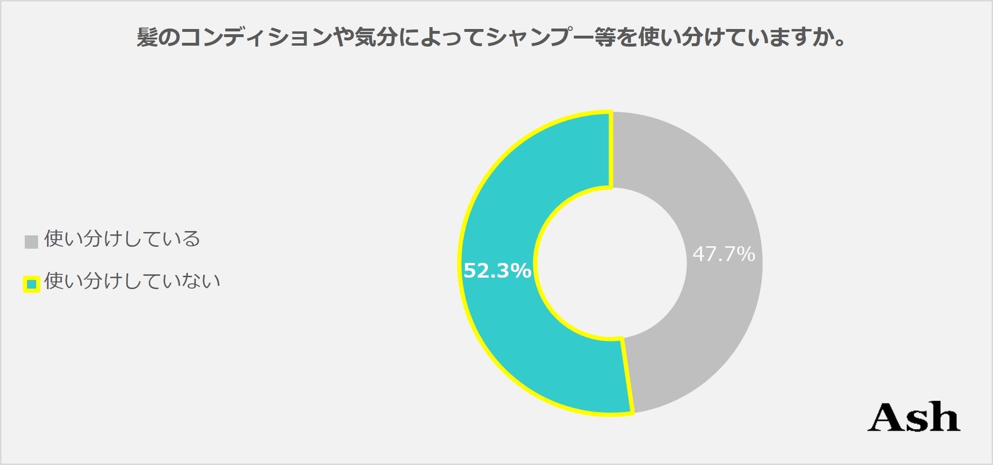 シャンプーを「使い分けしている」と回答した美容師は47.7%、「使い分けしていない」と回答した美容師は52.3%となりました。お気に入りのものをずっと使い続ける派の方がやや多い結果となりました。