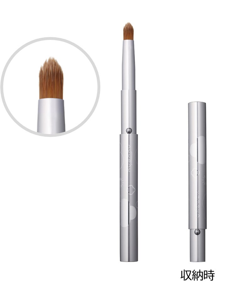 アクセントブラシはさまざまなコスメに対応できるよう、ナイロン毛を使ったスライドタイプ。目元をきらめかせるクリーム・ジェルタイプのアイカラーをのせるのに最適です。程よいコシで、アクセントカラーや陰影の表現はもちろん、ライン使いも思いのままに。