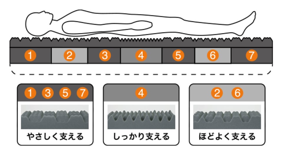 7つのゾーンで理想の寝姿勢を保つ“ラクシーン”シリーズ