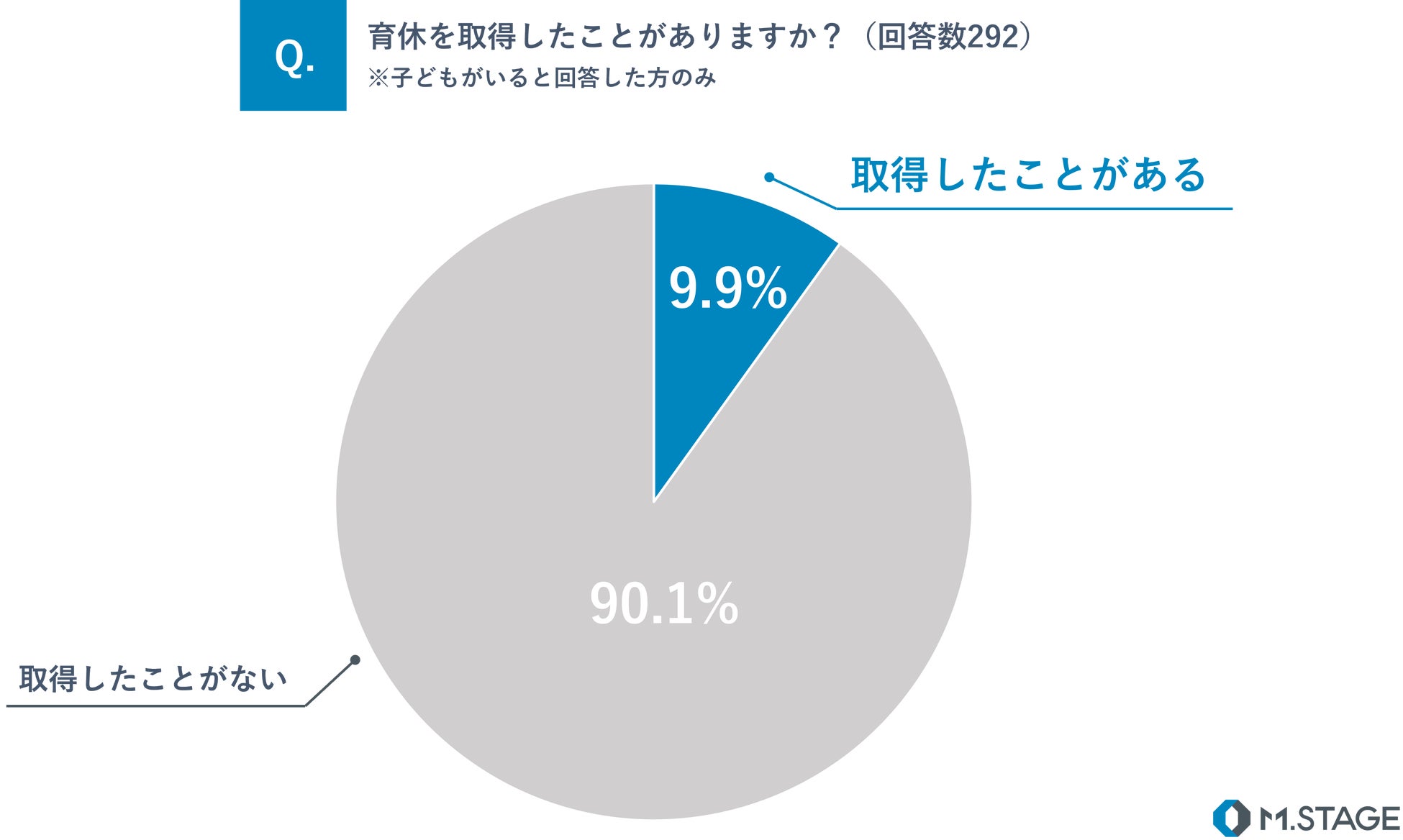 1. 子どもがいる男性医師の9.9%育休の「取得経験あり」