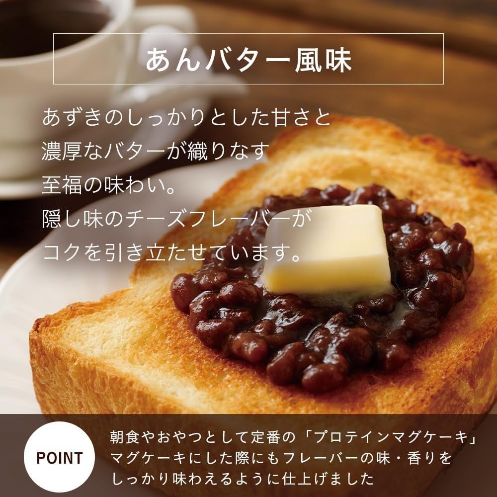 あずきのフレーバーパウダーをふんだんに使用し、バター感を出すためにバターの香料・フレーバーパウダーを配合しました。また、隠し味にチーズのフレーバーパウダーも使用することでコクを出しました。トレーニング後や朝食・おやつの置き換えにおすすめです。
