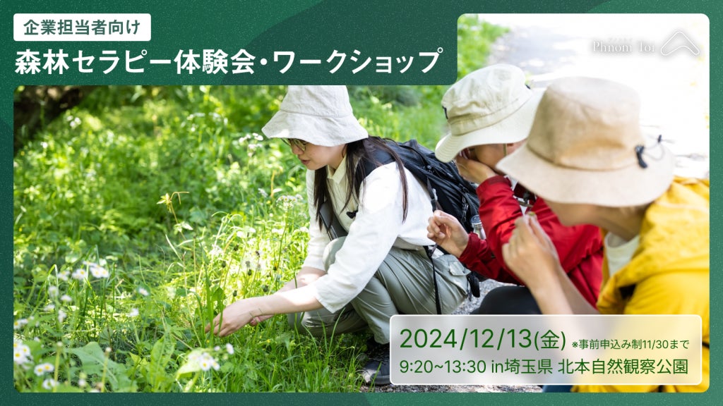 森林・里山の新たな価値を作り届けることをミッションに自社ブランドPhnom Toiの運営や企業の環境経営支援を行う株式会社プノントイ(所在地:東京都品川区 代表取締役社長:吉成絵里香)と、北本市観光協会(所在地:埼玉県北本市 代表理事:安江洋)は共同で、企業の人事・健保組合等担当者を対象とした「森林セラピー体験会・ワークショップ」を12月13日(金)に北本自然観察公園にて開催しますので、お知らせいたします。