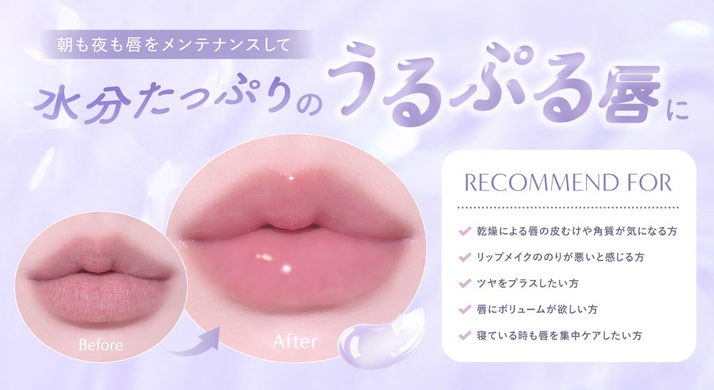 唇に水分チャージすることで、縦ジワのないハリのある唇に。※