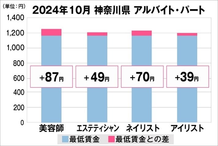 2024年10月時点で『美プロ』に掲載されている「神奈川県」の「美容師・エステティシャン・ネイリスト・アイリスト」求人における「正社員」「アルバイト・パート」の給料を抽出。