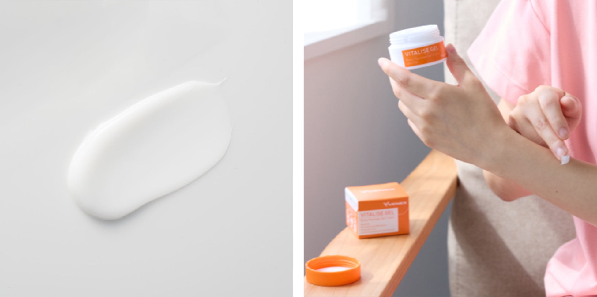 休養時専用「リカバリーウェア」を提供してきたベネクスが新たに提案するのは、生命や活力を意味する「VITAL」と、増やす・高めることを意味する「RISE」を合わせ、休養を通して毎日を元気に過ごすための活力向上に繋げてほしいと願いを込めて開発した、新商品『VITALISE』シリーズ。お風呂上がりやマッサージの時に肌に塗布して使用する『VITALISE GEL』、体の冷えが気になったり、疲れを感じる時におすすめの入浴剤『VITALISE BATH』の2種類です。