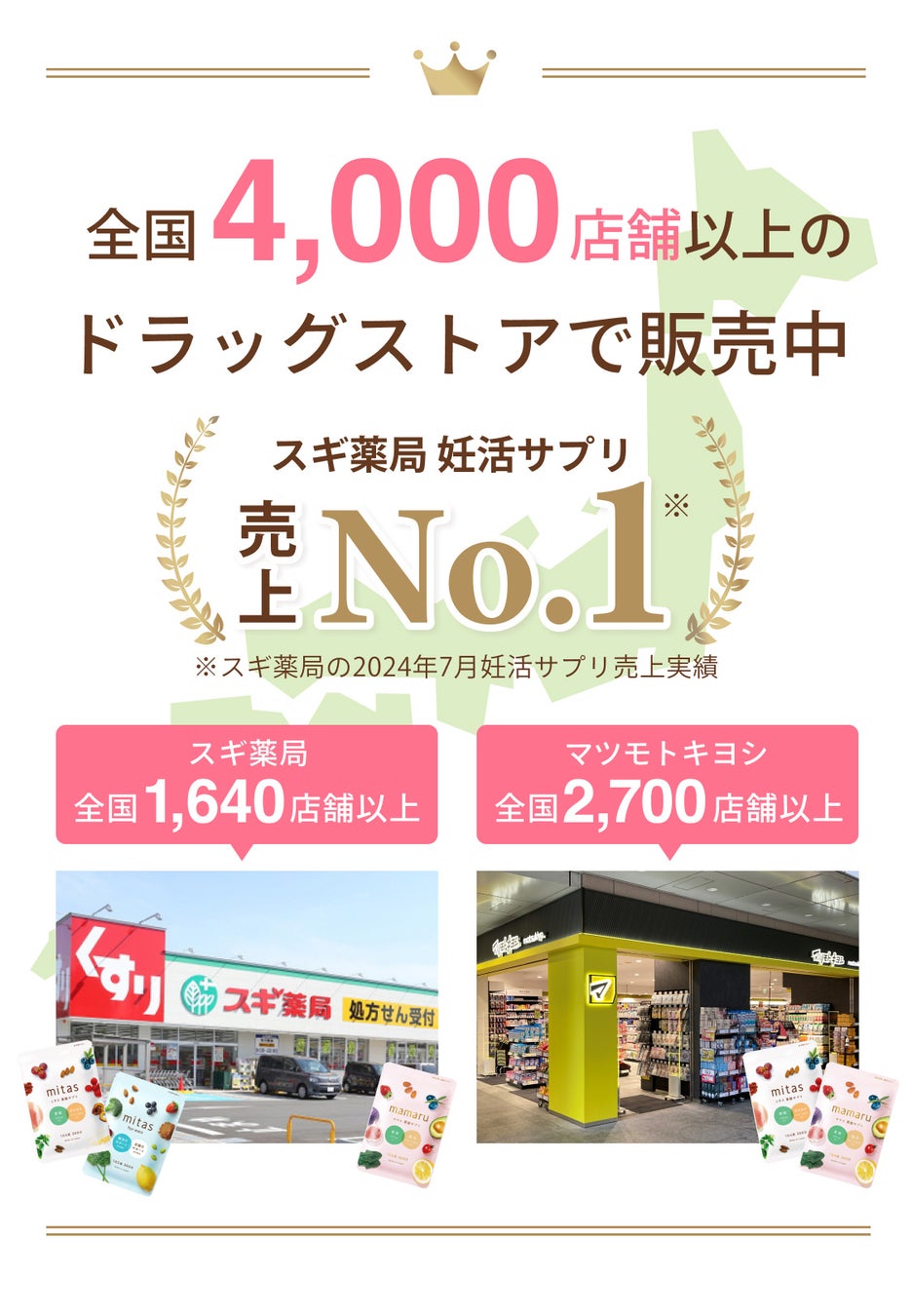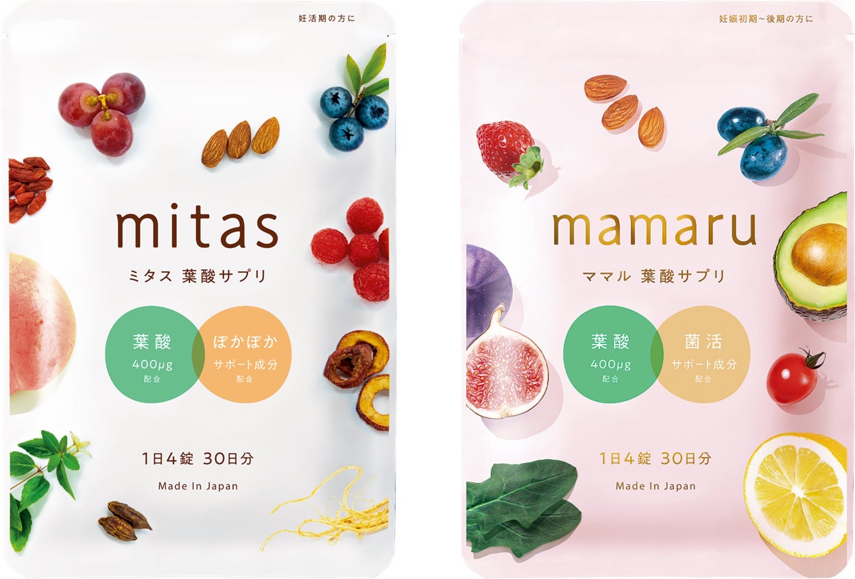 natural tech(ナチュラルテック)株式会社(代表取締役社長:竹内太郎 / 住所:東京都千代田区九段南2-4-11 パシフィックスクエア九段南ビル8階、以下 当社)は、時期別葉酸サプリメントのmitas seriesから妊活時期特化の『mitas (ミタス)』と妊娠中特化の『mamaru (ママル)』の両製品を全国のマツモトキヨシ・ココカラファインで2024年11月13日から販売開始いたします。