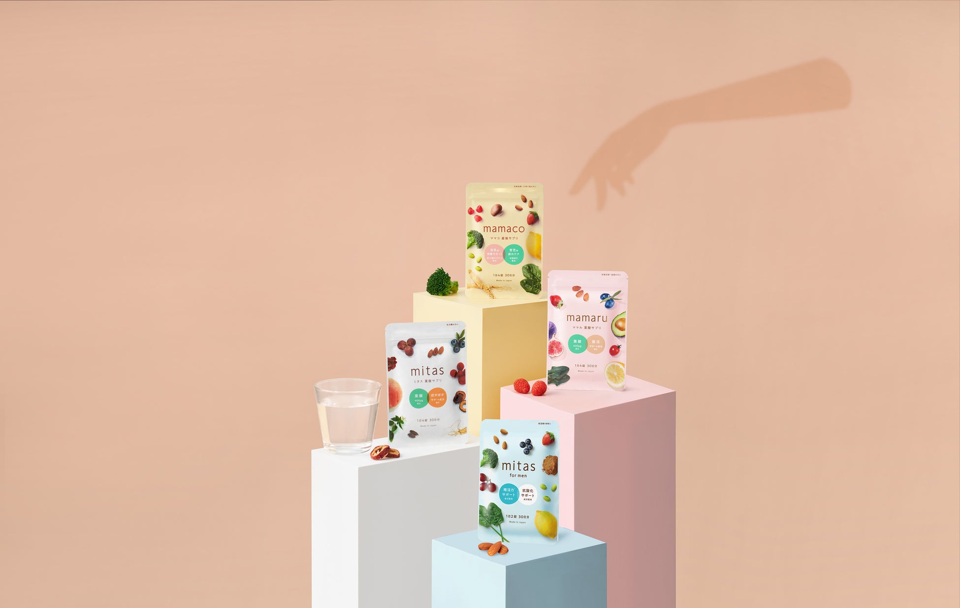 妊活期用のmitas、男性妊活用のmitas for men、妊娠期用のmamaru、授乳期用のmamacoと消費者の時期に合わせた製品を展開しています。