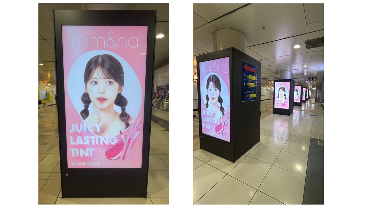 コスメブランド「rom&nd(ロムアンド)」では、ビーツ渋谷ビジョン、池袋駅 副都心線西東改札・丸福ホーム連絡通路の計3か所にて11月1日(金)より壁面広告を同時掲出しています。