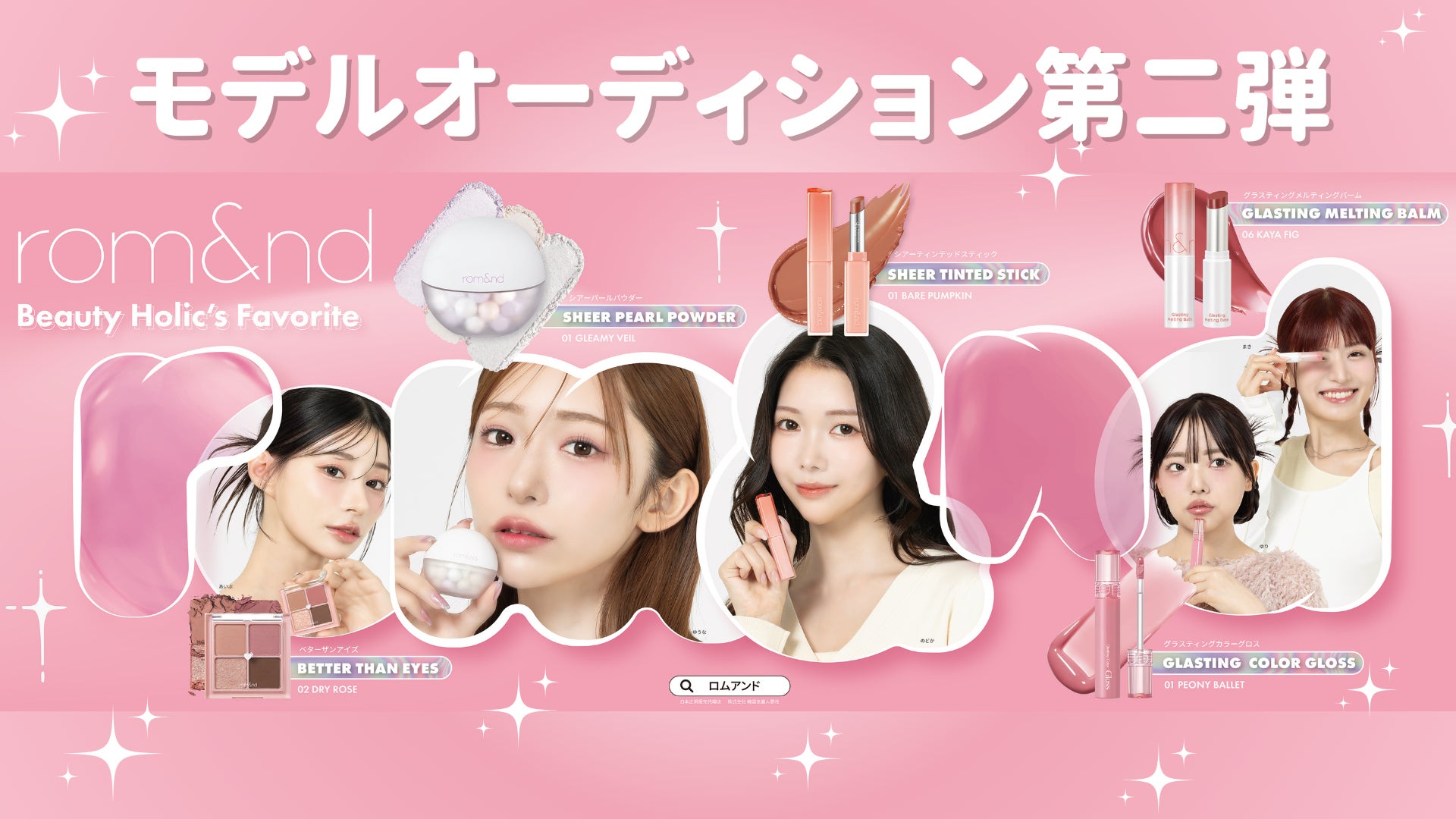 今回掲出される壁面広告は、PRモデル18名がそれぞれのパーソナルカラーに合わせ、rom&ndのアイテムを使用しメイクを施しました。