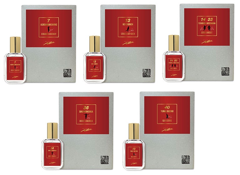 18種類のベースフレグランスから、調香師と共に時間をかけて6選手(チャヴリッチ選手、知念選手、樋口選手、仲間選手、師岡選手、鈴木選手)が自身の好みの香りを選びながら作り上げました。本日よりオンラインストア限定にて受注販売を開始いたします。