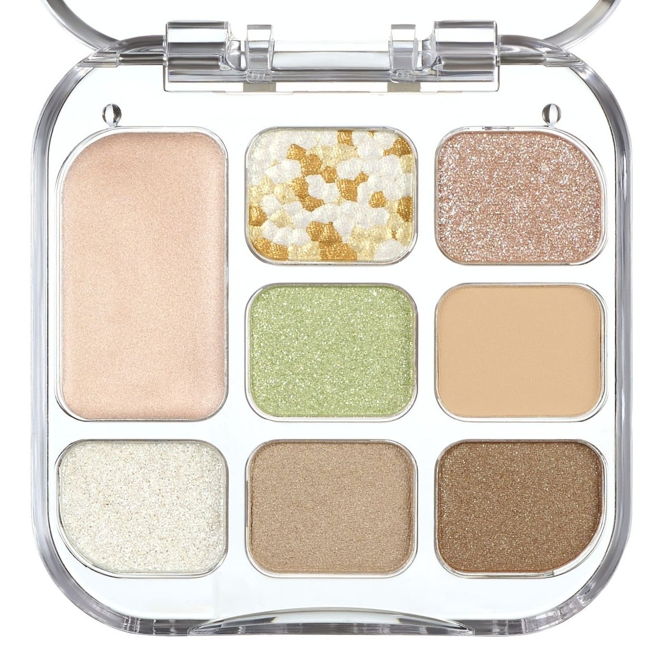 iromikkeの8色アイシャドウパレットは、全4種類のカラー展開で、すべてのパレットがプチプラでは珍しいアイベース付きの贅沢な構成となっています。アイベースはパールが配合されており、バーム状の滑らかな質感。ひと塗りで目元をきらっと華やかに、ぴたっと密着してくれることが特徴の”きらぴた”アイベースです。この“きらぴた”アイベースをアイメイク前に使うことで、目元のトーンアップ、アイシャドウの発色向上、色持ちアップ、メイクよれの防止の4つの効果を発揮します。華やかな目元が長時間続き、ワンランク上の仕上がりを叶えてくれる優秀パレットです。