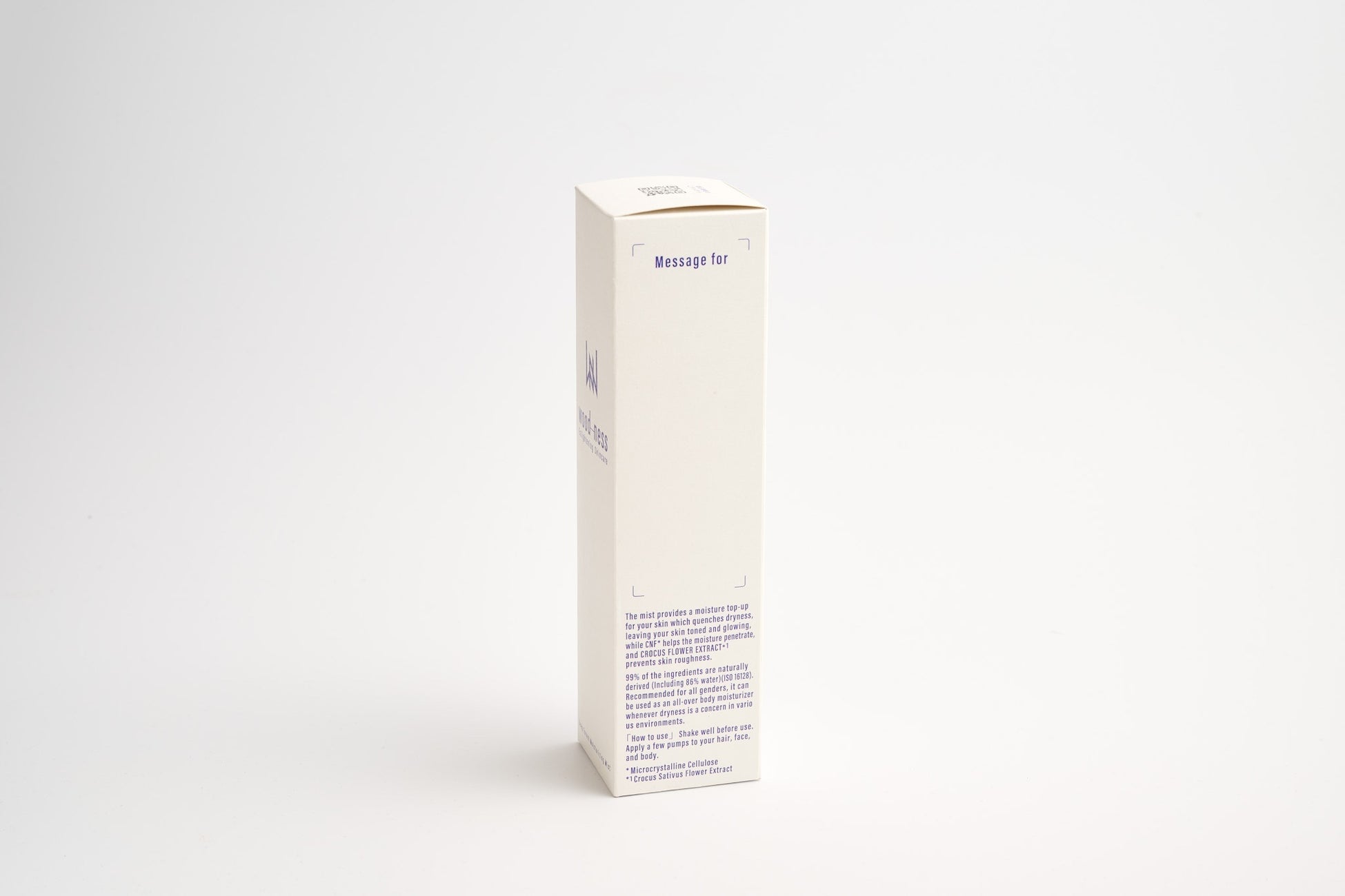 パッケージはユーザー意識調査を弊社内で行い、化粧品使用における「使いやすさ」を求める声を多く聞き、容器をミストタイプにし「振りかけるだけで保湿できる」ようにしました。