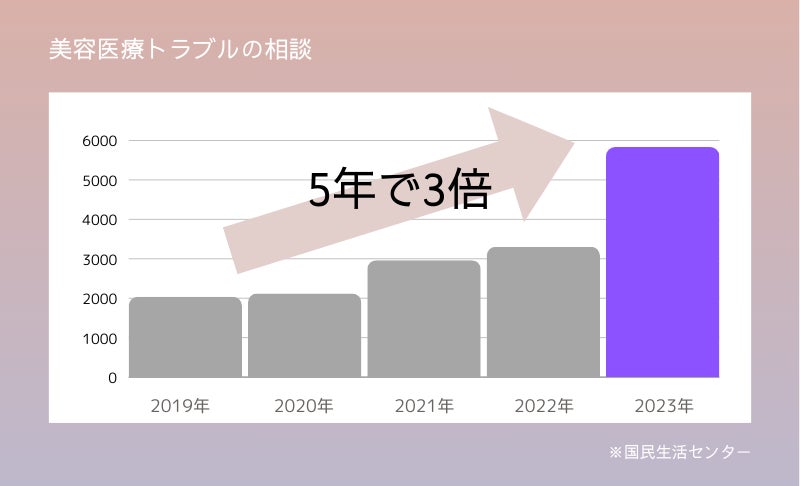 近年、美容医療が一般的になる一方で、2019年から2023年の間に国民生活センターに寄せられる美容医療トラブルに関する相談件数は約3倍に増加しています。今回開発したこのアプリでは、複数のクリニックをまたいでユーザー自身が美容医療の履歴を記録できるようにし、健康管理と施術効果の最大化に貢献します。より充実した美容医療ライフに寄り添いながら、ユーザーの安心と満足度をサポートします。