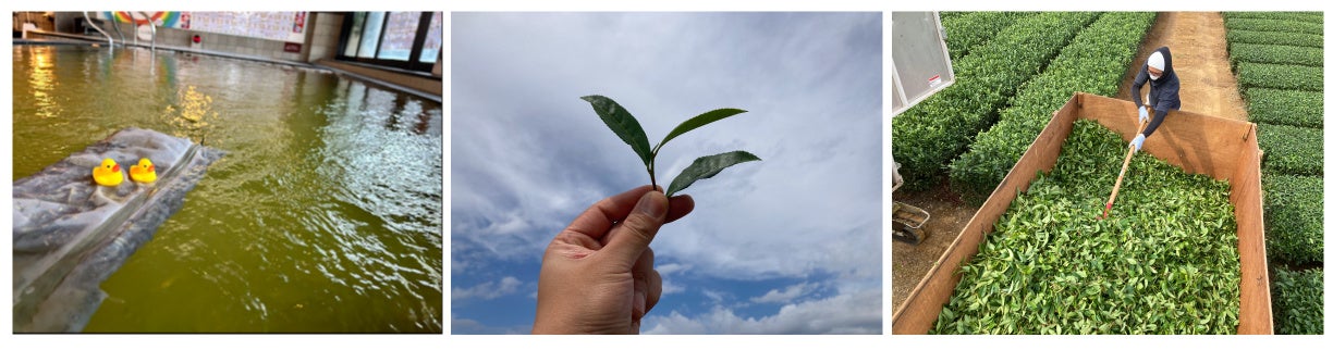 浜松のお茶生産者より直接仕入れた本物の茶葉「秋冬番茶」をお風呂に浮かべた特別なお風呂が登場します。