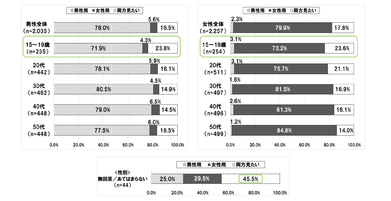 ※「男性用」…「男性用を見たい」「どちらかといえば、男性用を見たい」の合計
