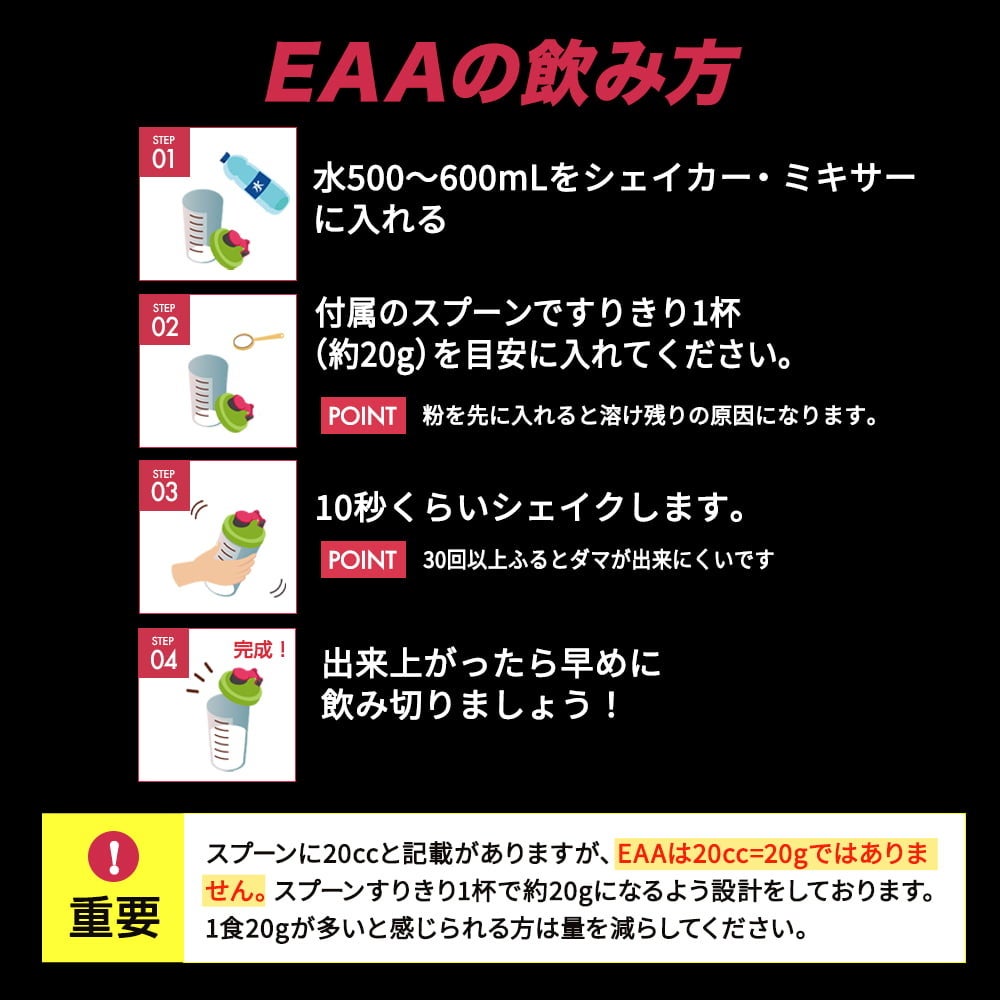 【原材料名】マルトデキストリン(国内製造)、β-アラニン、食塩、クレアチンモノハイドレート / L-ロイシン、 酸味料、L-イソロイシン、L-バリン、香料、L-フェニルアラニン、L-リシン塩酸塩、甘味料(アスパルテーム・L-フェニルアラニン化合物、アセスルファムカリウム)、 L-トレオニン、グリシン、L-グルタミン、L-メチオニン、L-ヒスチジン、L-トリプトファン、乳化剤、(一部に乳成分・大豆を含む)