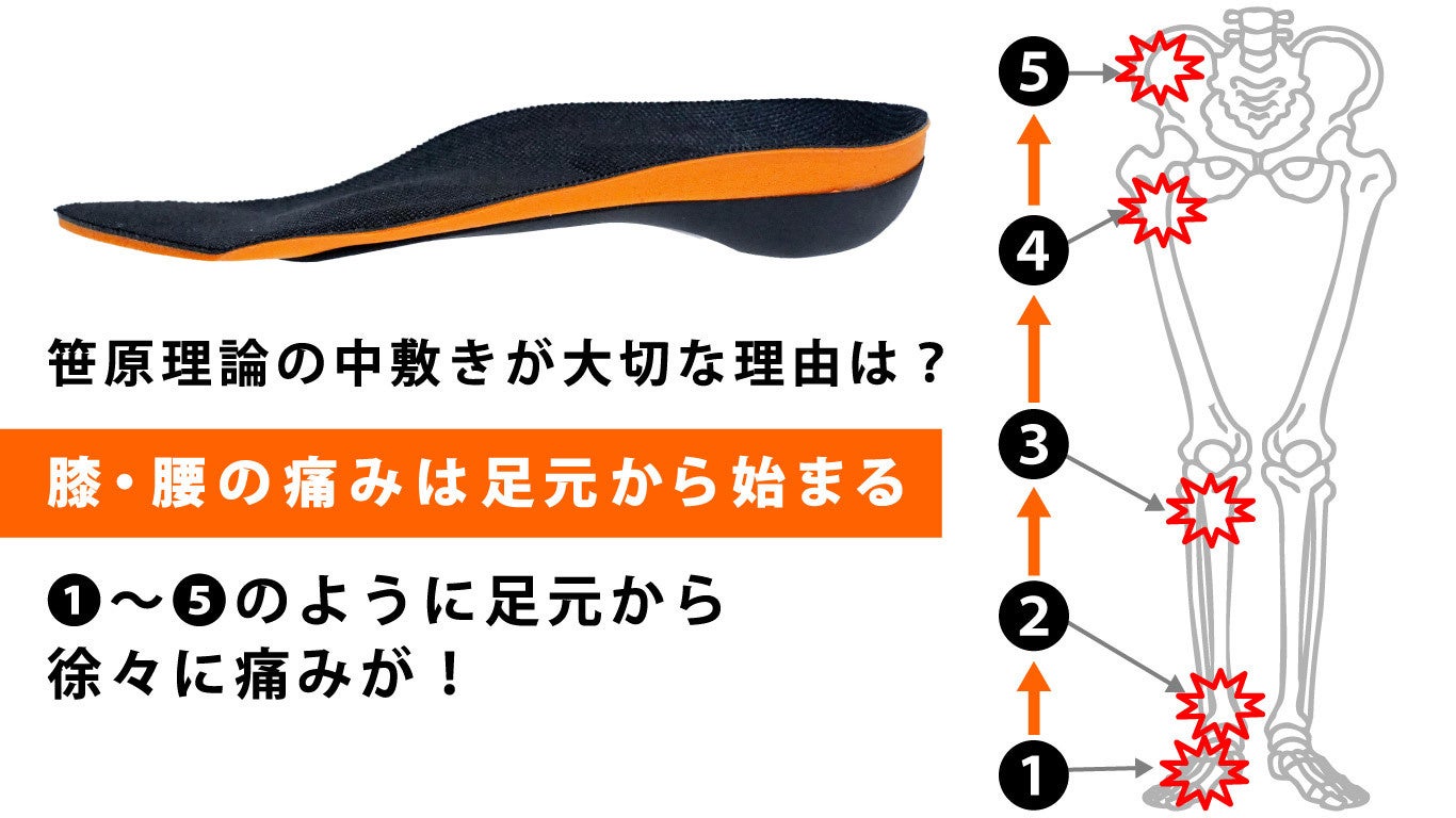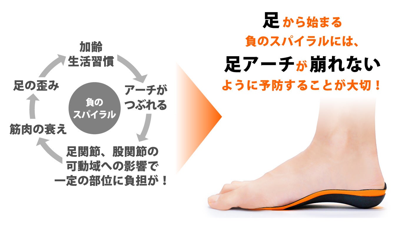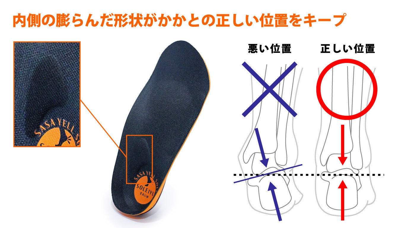 内アーチ+中足骨をしっかりと支えることで骨盤の傾きをサポート