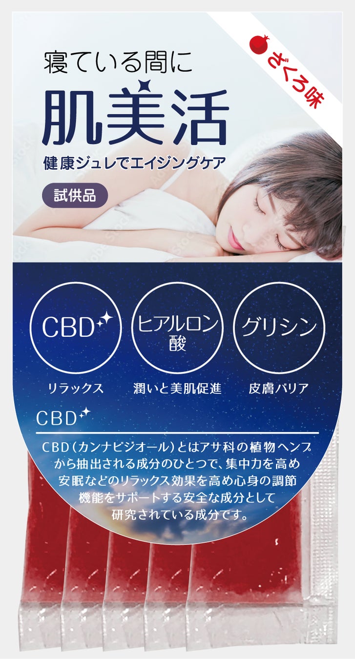 この度、当社では今冬の販売を目指して、今スーパーフードとしても注目を集めているCBDやヒアルロン酸、グリシン、乳酸菌を配合した新しい食べるナイトサプリ「寝ている間に肌美活」を開発しました。