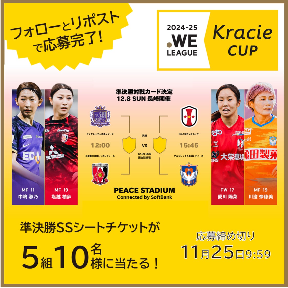 「2024-25 WEリーグ クラシエカップ」準決勝の組み合わせが決定!観戦ペアチケットが当たるキャンペーンを実施します