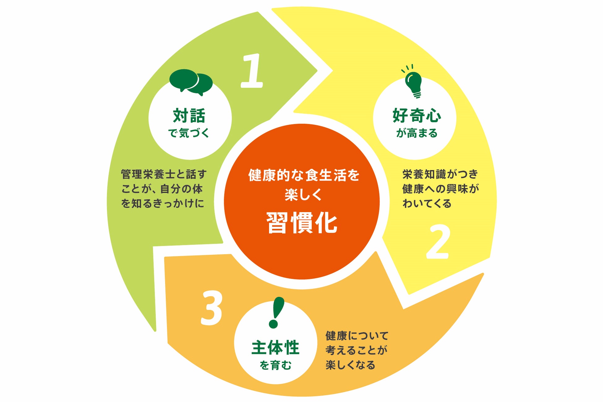 パーソナル栄養相談サービス「タイヨウ相談」は、管理栄養士がお客様と1対1で対話することにより、それぞれの生活習慣に寄り添ったサポートを行います。また、PHR(パーソナルヘルスレコード)アプリの活用により、リアルとオンラインでの双方向サポートを実現。「健康的な食生活の習慣化」の一助となり、自ら主体的に健康に取り組む人の増加、ひいてはヘルスリテラシーの向上を目指しています。