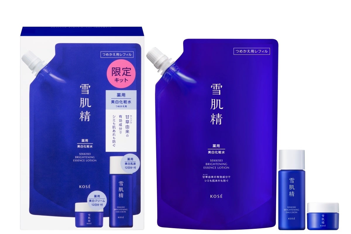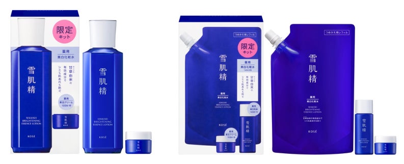 株式会社コーセー(本社:東京都中央区、代表取締役社長:小林 一俊)は、当社を代表するスキンケアブランド『雪肌精』から、「美白」×「肌あれ防止」のW効能をもつ薬用美白化粧水「薬用雪肌精 ブライトニング エッセンス ローション」の現品に薬用美白クリーム「薬用雪肌精 ブライトニング クリーム」のミニサイズをプラスした特別限定セットと、「薬用雪肌精ブライトニング エッセンス ローション」のつめかえ用レフィルに同有効成分配合の薬用美白乳液「薬用雪肌精 ブライトニング エマルジョン」のミニサイズ、「薬用雪肌精 ブライトニング クリーム」のミニサイズの3品をライン使いできる特別限定セットの2種を、2024年11月16日(土)に発売します。