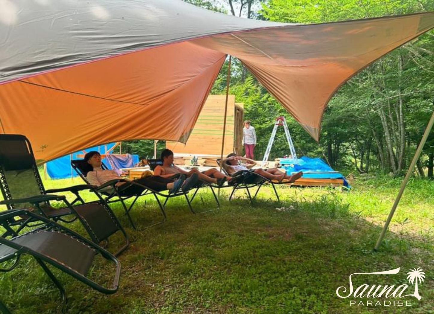 テントサウナパークin高瀬野では来年はさらに広々とした場所でテントサウナが行えるよう準備にはいるため現在予約受付を停止しています。
