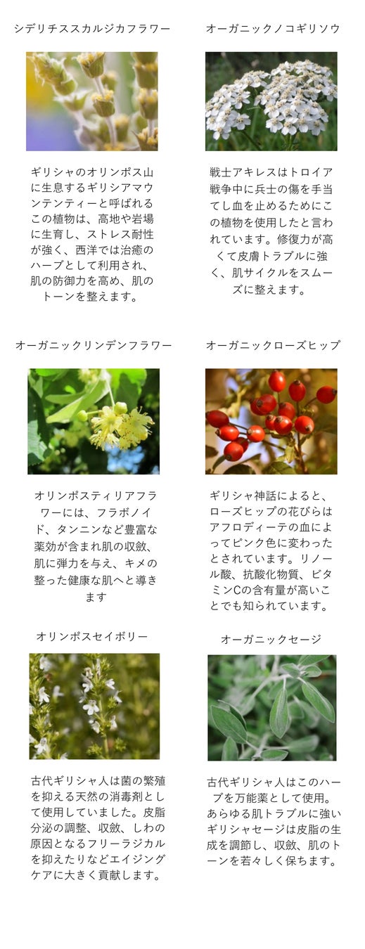 MontOlympeは医師であり生物学者の夫婦が古代から伝わる薬草学と最新の医学的知見を組み合わせたギリシア発のコスメブランドです。古代ギリシア神話の神々が集う場所、オリンポス山の緑豊かなハーブと湧水を使い、テッサロニキ・アリストテレス⼤学薬学部と遺伝子研究所と共同で開発されました。