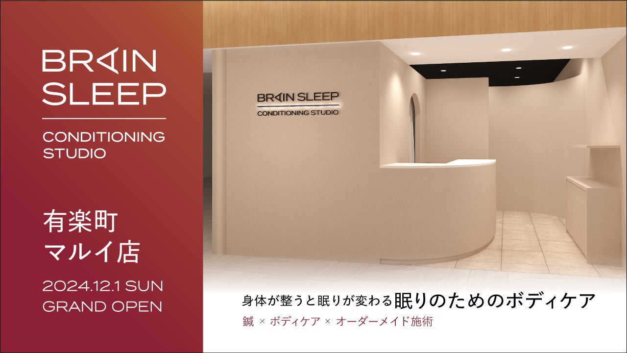 株式会社ブレインスリープ(本社:東京都千代田区、代表取締役:廣田 敦、以下「ブレインスリープ」)は、睡眠に特化した鍼灸マッサージ店舗「ブレインスリープ コンディショニングスタジオ(以下、コンディショニングスタジオ)」を東京・有楽町エリアに12月1日(日)にオープンいたします。「コンディショニングスタジオ」は個々の睡眠や体調の状況に合わせ、独自の睡眠改善メソッドから施術を行っており、第3号店となる「ブレインスリープ コンディショニングスタジオ 有楽町マルイ店(以下、「コンディショニングスタジオ 有楽町マルイ店」)」は、鍼とボディケアを掛け合わせたオーダーメイドメニューに特化し、より多くの方が継続的に通いやすくなるよう定額プランもご用意いたしました。