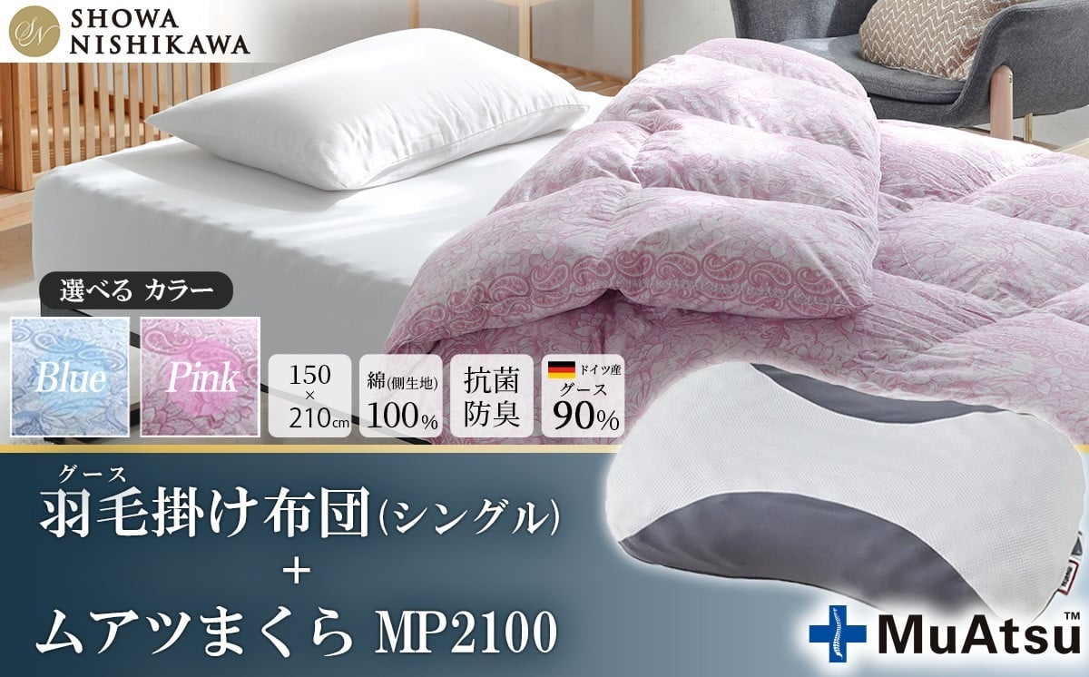 ●CMD羽毛ふとん グース90%シングル(ピンク・ブルー)+ムアツまくらMP2100(セット)寄付金額:260,000円