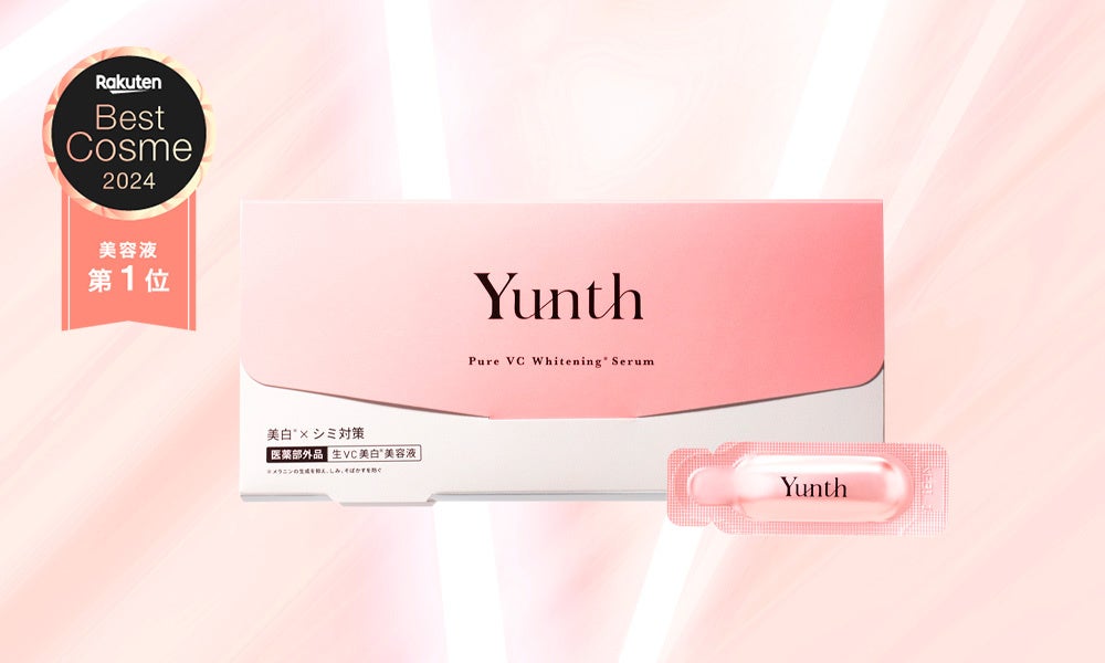 380万個以上*3の販売実績を誇るYunthブランドの代表アイテム。生ビタミンC*2を独自処方で閉じ込めた“使用期限30秒*1”の導入美容液です。いつでも新鮮な状態で使える個包装パッケージ、高保湿でありながらもベタつかないトロッとしたテクスチャー、有効成分アスコルビン酸(純粋ビタミンC)がメラニンの生成を抑え、しみ・そばかすを防ぎます。